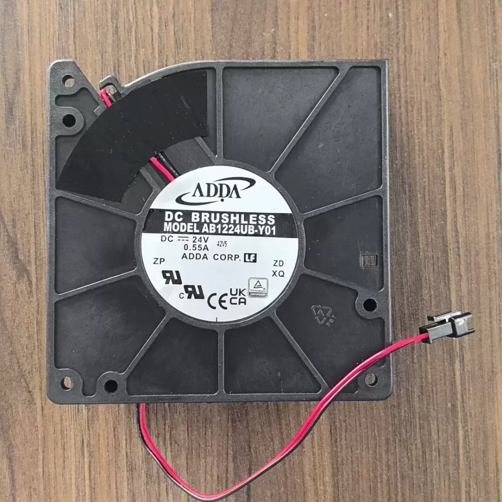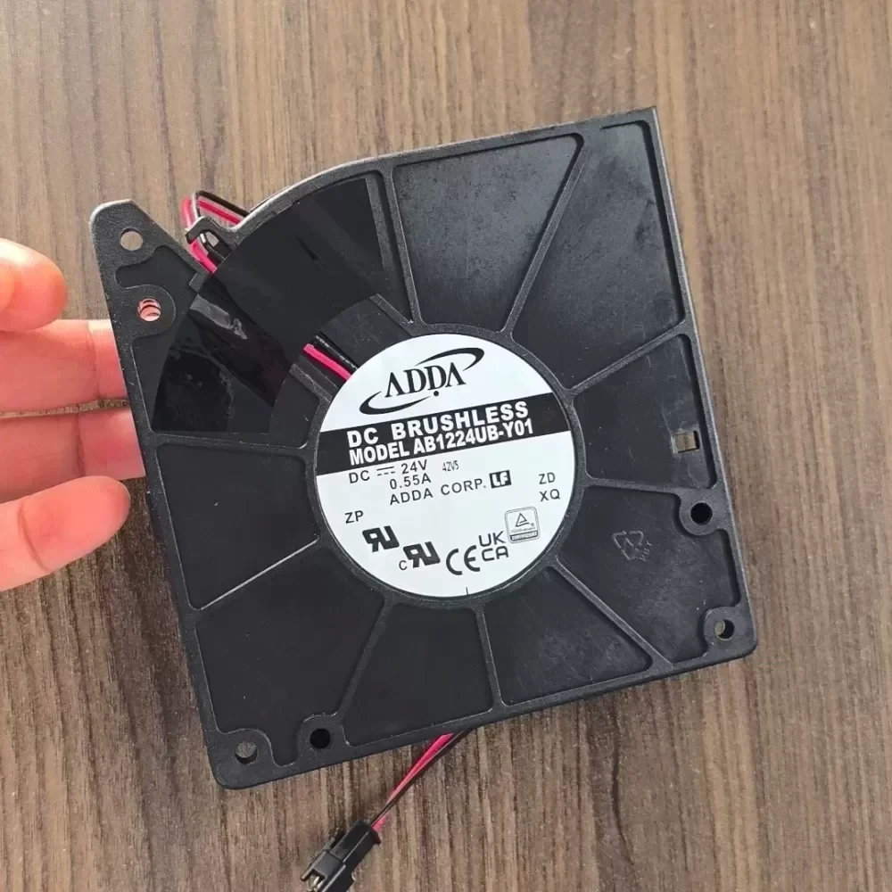 Taiwan ADDA original 12cm double ball bearing blower, model AB1224UB-Y01, 24V voltage, 0.55A current, size 120*120*32 mm. Brand new disassembled machine, complete functions, and silent design for large air volume. Blower centrifugal cooling fan