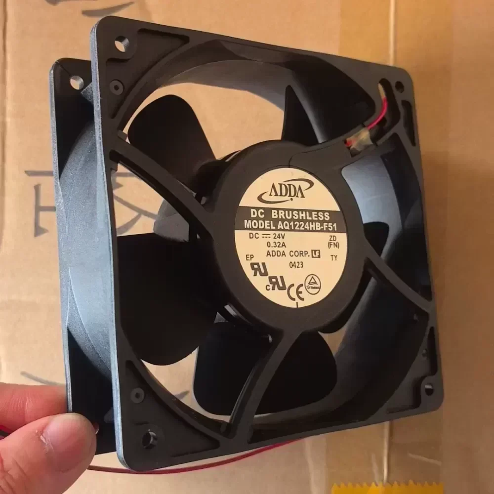 The new ADDA DC brushless fan was cleared. The waterproof fan model is AQ1224HB-F51, 24V, 0.32A, suitable for computer coolers. There are slight traces of use but the function is intact without maintenance, and the quality is reliable. In-kind shooting without retouching.