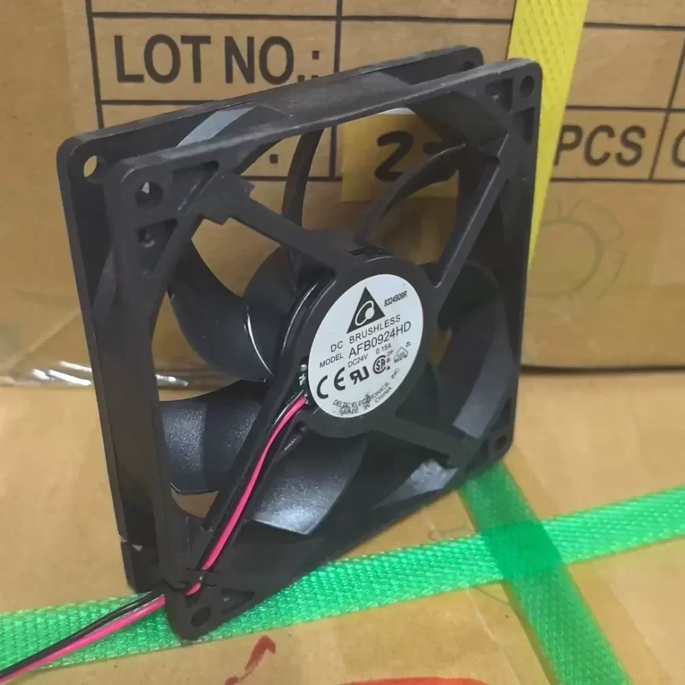 The new Delta AFB 0924HD cooling fan, 9cm large air volume dual ball bearings, 24V voltage, 0.15A current. Suitable for inverter heat dissipation, chassis heat dissipation, and power dissipation. Brand new original authentic products, support testing, and the price can be discussed. Self-delivery in the same city, free delivery in other places, large discounts, welcome consultation.
