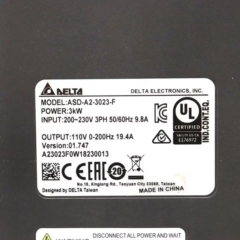 Brand New Orginal Delta ASD-A2-3023-F 3KW Servo Motor With Drive for Industrial Machine