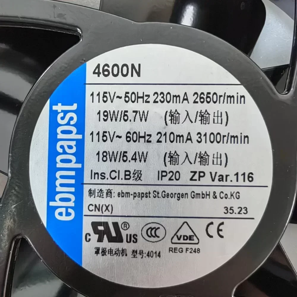 For EBMPAPST 4600N AC Axial Compact Cooling Fan 115V 60HZ 19W 119*116*38MM Ball 115V 60HZ 19W 119*116*38MM Electric Metal