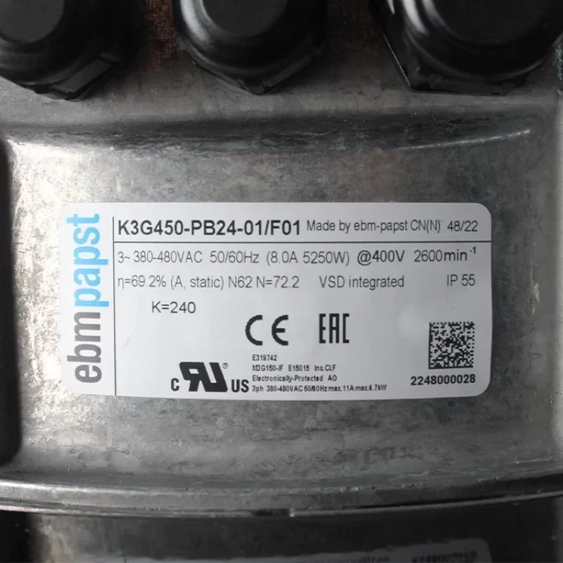 Ebmpapst K3G450-PB24-01/F01 400V 5250W 2600RPM 450MM Backward Curved Centrifugal Fan Industrial Cooling Bracket Fan