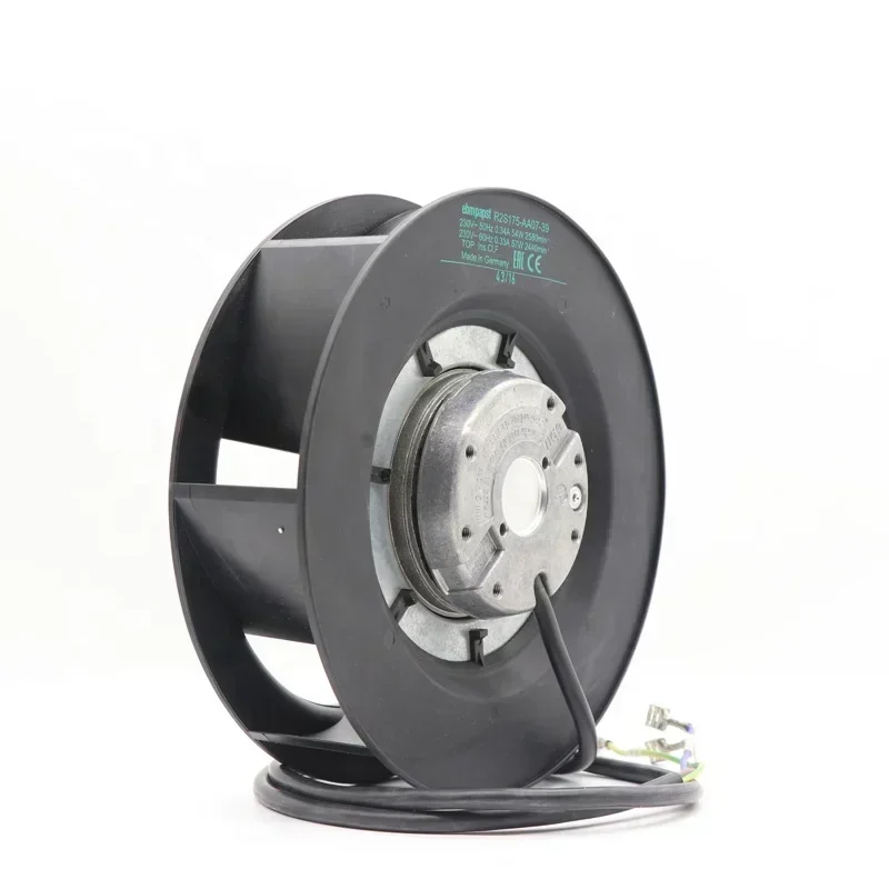 ebmpapst R2S175-AA07-39 Fan Motorized Impeller 230VAC 175x175x69mm 2440RPM 57W IP20 3 Wire Leads Centrifugal Cooling Fan