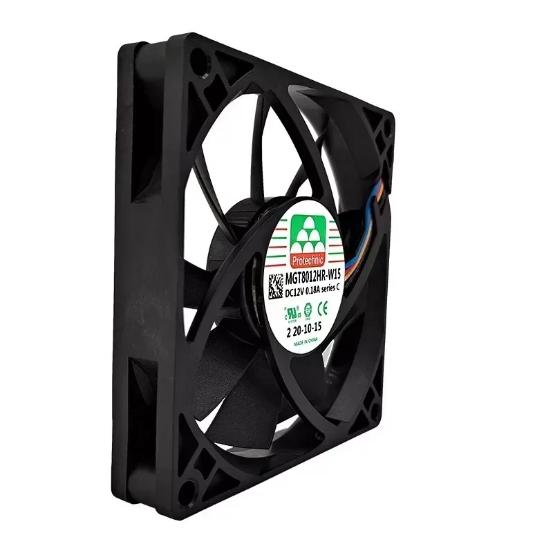 Protechnic Electric Small Axial Fan MGT8012HR-W15(C) 12VDC 80*80*15mm 3000RPM Plastic ODM Silent Exhaust Ball Bearing