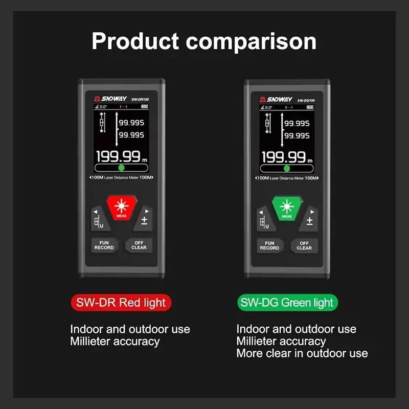 SNDWAY SW-DG100 Dual Laser Distance Meter Green Laser Measuring Tool 200M