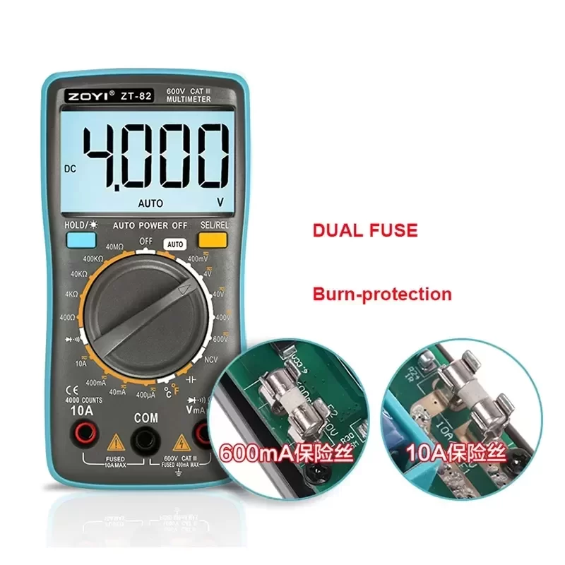 ZOYI ZT-82 Digital Multimeter 4000 Counts Dual-Mode LCD Manual Auto Ranging Electronic Measuring Instrument Tester
